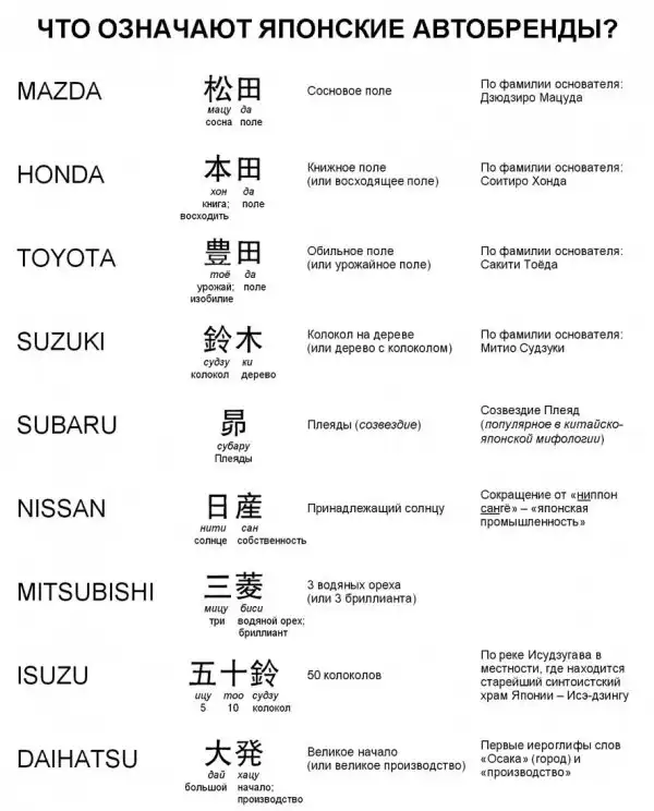 Как переводятся японские автобренды