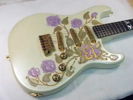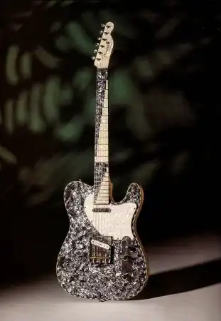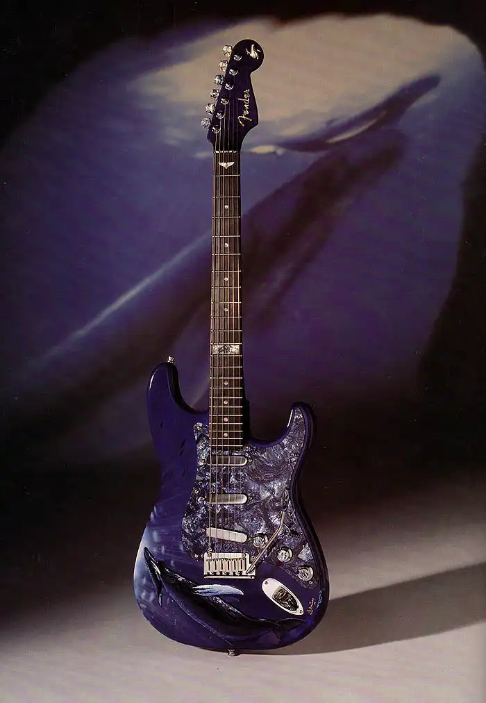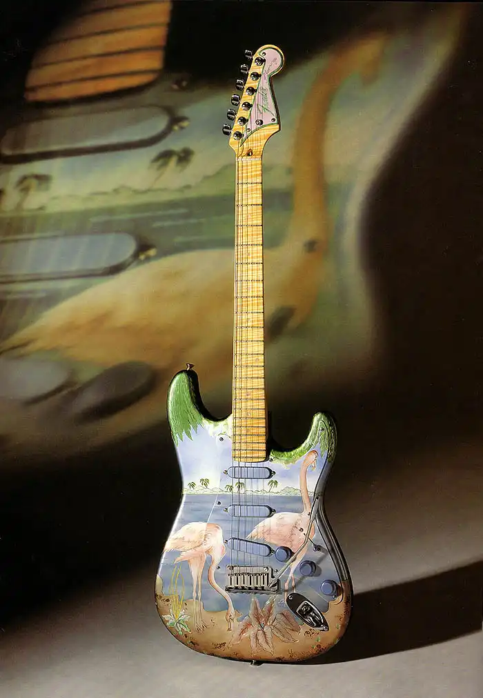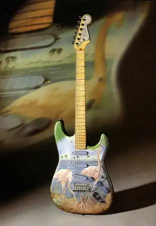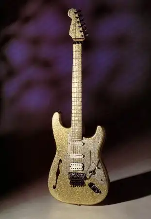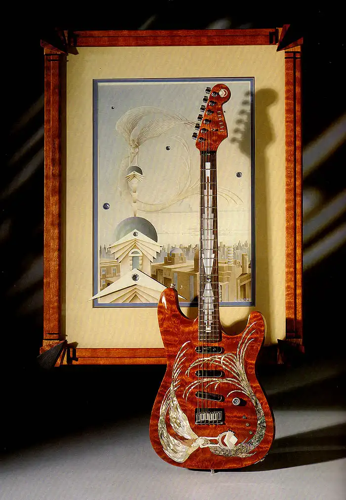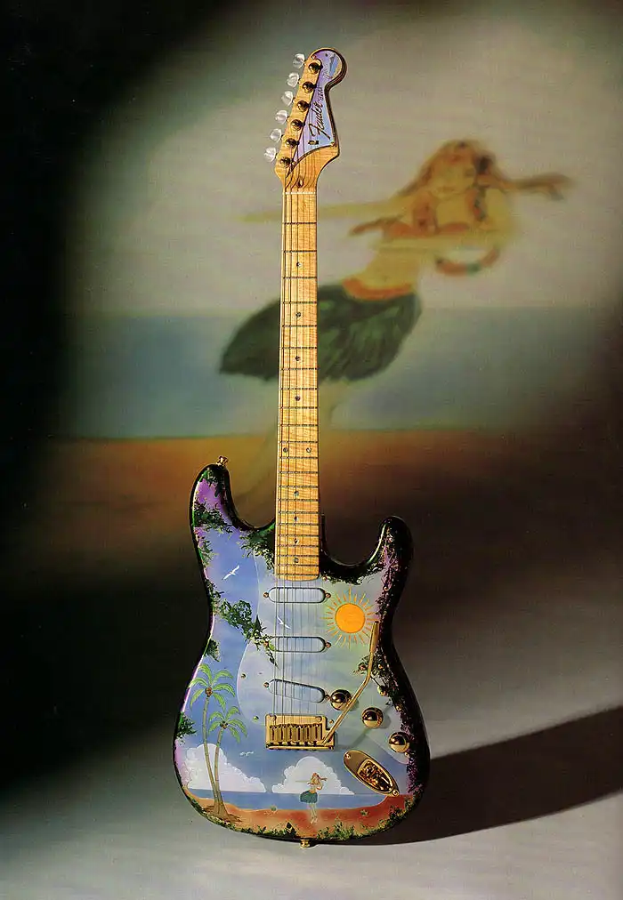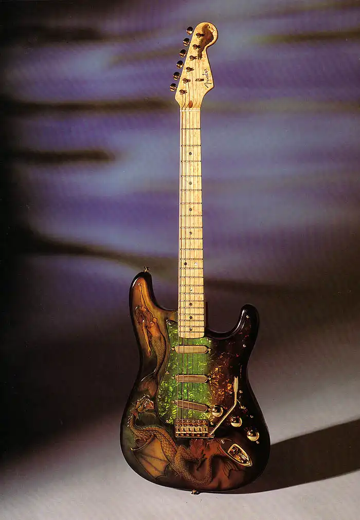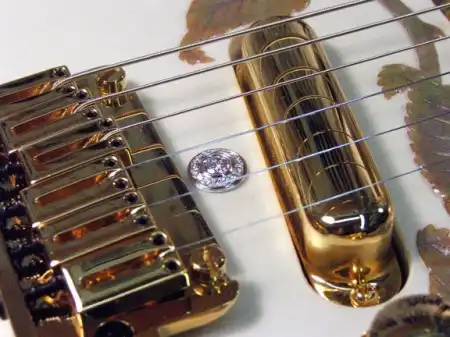 Эта крошка увенчанная бриллиантом в 5 карат сделана лучшими мастерами Fender Custom Shop. Кстати, над ней работали наш бывший соотечественник Юрий Шишков(ныне Fender CS USA), и Chris Schnabel один из ведущих художников Disney pict.