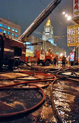 Вечером в четверг автомобильное движение в Москве было блокировано из-за пожара в центре города. Пробка на Садовом кольце возникла из-за сильного пожара в трехэтажном здании старой постройки, расположенном напротив входа на станцию метро «Смоленская» Филевской линии. Как сообщил РИА «Новости» начальник пресс-службы главного управления МЧС по Москве Евгений Бобылев, сигнал о возгорании на втором этаже особняка по адресу Смоленская площадь, 7 поступил в 17.46. Здание находится на реконструкции, работал лишь магазин на первом этаже особняка. При пожаре никто не пострадал – все люди, находившиеся в здании, покинули его самостоятельно. Тем временем огонь быстро перекинулся в подвал особняка и на третий этаж.