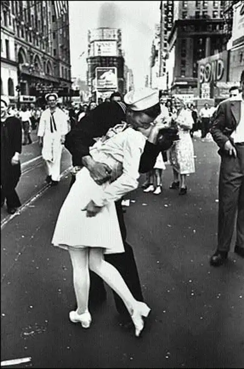После окончания Второй Мировой, фотография с моряком, целующим медсестру на Тайм Сквер обошла все американские газеты. Спустя 40 лет фотограф Альфред Эйзенштейд (Alfred Eisenstaedt) решил найти «сладкую парочку”… Легенда гласит, что у него это получилось, и его встретили «счастливые бабушка и дедушка в окружении шумной толпы детей и внуков»… Однако, реальная история такова - на роль целующегося моряка претендовало несколько мужчин... Одного из них «опознали» с помощью компьютерной экспертизы, но престарелая медсестра до самой смерти утверждала, что это был другой…