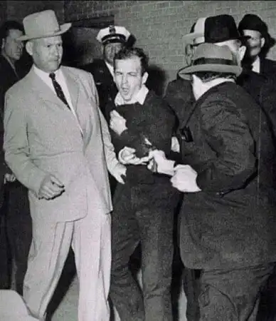 Вскоре после убийства президента Кеннеди его убийца – Ли Харли Освальд - сам стал жертвой покушения. Освальд был застрелен в полицейском участке Далласа Джеком Рубинштейном в тот момент, когда его вывели для отправки в федеральную тюрьму. Фотограф Роберт Джексон (Robert H. Jackson) запечатлел мгновение за несколько секунд до выстрела…
