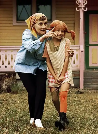 Астрид Линдгрен на съемках фильма о Пеппи с исполнительницей главной роли – Ингер Нильссон. Экранизации и театральные постановки по произведениям Линдгрен были очень популярны в Швеции – в 1969 году пьесу о Карлсоне, который живет на крыше, поставил Королевский драматический театр. По шведскому ТВ шли телесериалы по книгам Астрид, а театральные спектакли ставились в театрах Европы и США. Все мы хорошо помним спектакль в Московском театре сатиры с несравненным Спартаком Мишулиным в главной роли.