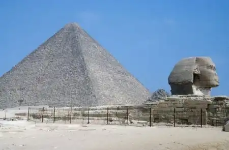 Близ пирамиды Хефрена возвышается одна из крупнейших статуй древности и нашего времени — высеченная из скалы фигура лежащего сфинкса с портретными чертами самого фараона Хефрена.