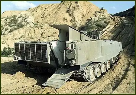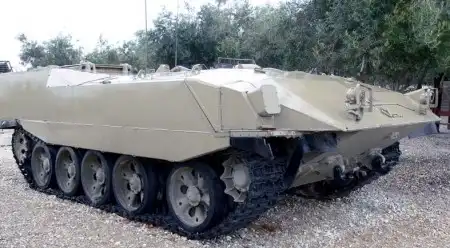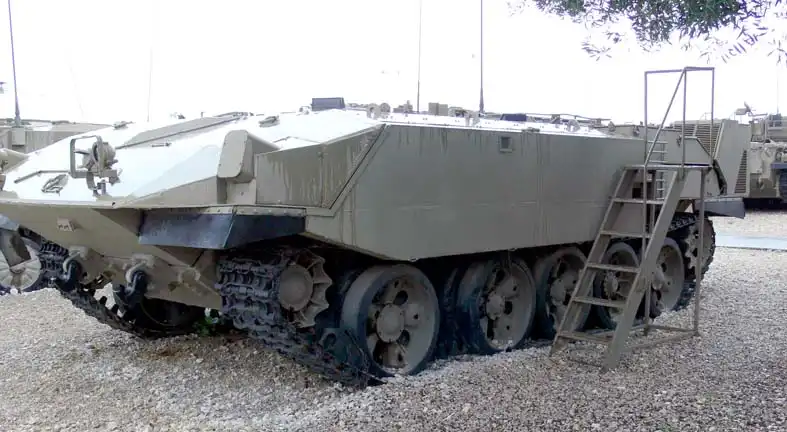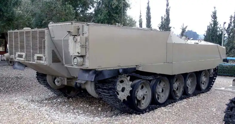 Компоновка БМП предусматривает переднее расположение отделения управления. Водитель (сидит слева), командир (справа) и наводчик (в середине) находятся в носовой части корпуса. Их сиденья могут приподниматься для возможности обзора на марше. Для наблюдения у водителя установлены четыре перископических прибора наблюдения. В средней части имеется десантное отделение вместимостью семь человек. Трое десантников сидят вдоль левого борта на скамье, столько же вдоль правого на откидных силеньях и одно место находится у кормовой переборки отделения. В крыше смонтированы шесть призменных блоков (2 слева и 4 справа). Моторно-трансмиссионное отделение располагается в кормовой части корпуса. Машина полностью бронированная, с большими опорными катками (установлены новые торсионные валы, обеспечивающие больший динамический ход катков). Первый и последний опорные катки с каждого борта оснащены гидроупорами, разработанными израильской компанией «Israel Aircraft Industries» (такие же используются на танкех «Меркава»). Двигатель и трансмиссия заменены новым силовым блоком, состоящим из восьмицилиндрового двухтактного дизельного двигателя Detroit 8V-71TTA водяного охлаждения мощностью 485 кВт (650 л.с.) фирмы «Дженерал моторс», установленного поперек корпуса, и гидромеханической трансмиссии XTG-411-4 фирмы «Аллисон». Выхлопная тркба выходит на левый борт, жалюзи радиатора двигателя – назад.