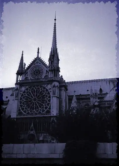 И вдруг... готика! Это был взрыв, революция в строительстве храмов. Здания как бы теряют материальность, кажутся невесомыми, хрупкими. От легких на вид, очень высоких башен до фундаментов они сплошь покрыты ажурными каменными кружевами. Размеры громадны, поражают воображение. Храмы как бы в сильнейшем экстатическом порыве неистово, дерзко рвутся к небесам, подобно библейской Вавилонской башне. Вместо стен в готических соборах появляются стеклянные окна с витражами шириной от пилона до пилона и высотой до самых сводов. Узорчатые переплеты витражей - это хрупкие и легкие на вид кружева, самого разнообразного рисунка с преобладанием стрельчатой арки и растительного орнамента (однако, вытесанные из очень прочного камня со сложной профилировкой). Витражи из разноцветных дорогих стекол соединены в очень пышные растительные и геометрические орнаменты; в них нередки сюжетные композиции, картины на библейские темы и изображения множества святых. Круглое окно - “роза” (обязательный элемент главного фасада, над перспективным порталом) -также заполнялось живописными витражами. В соборе Шартра во Франции, например, роза имеет диаметр 13,5 метра. Соборы населяют тысячи скульптур: святых, ангелов, королей и ужасных чудищ-химер. Лучи солнца окрашиваются в цветных стеклах и заполняют интерьер летающими радужными пятнами, а высокие своды тонут в темноте. На вошедшего человека сверху обрушиваются мощные звуки органа. Синтез искусств оказывает даже на неверующего человека громадное воздействие. Глядя на цветные витражи знаменитого Шартрского собора вполне можно впасть в экстаз.