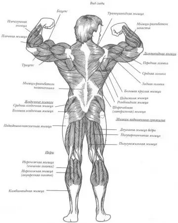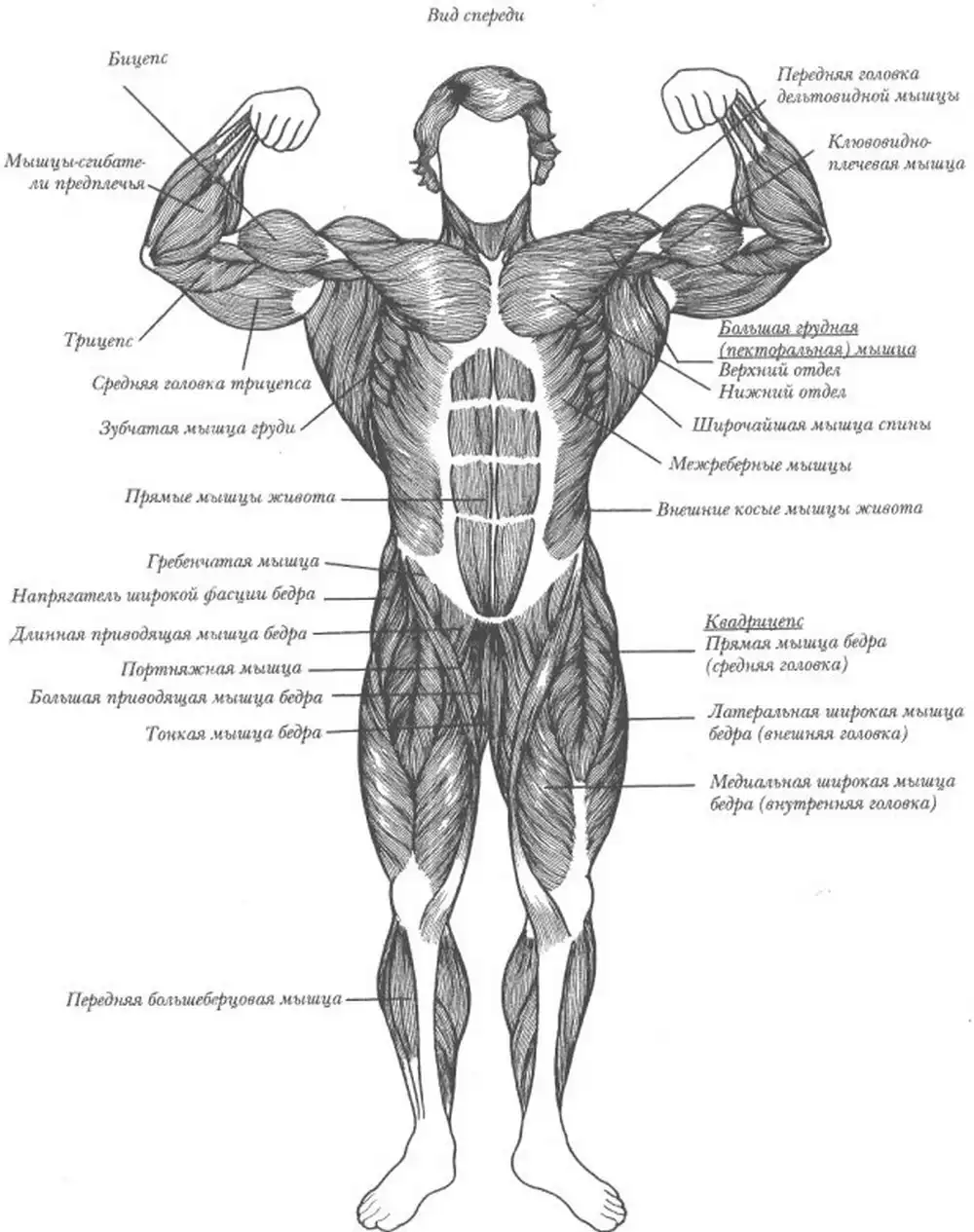Показаны осноные мышцы тела.