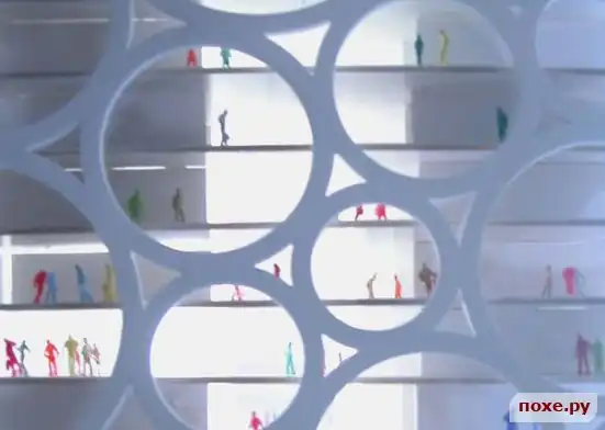 Но и это еще не все: если смотреть с фасада, то просвет между зданиями напоминает иероглиф «огонь», вид сверху похож на иероглиф «змея», волнистая крыша в основании сооружения символически говорит о «воде», а круглые окна – о «металле». В общем, одни символы.