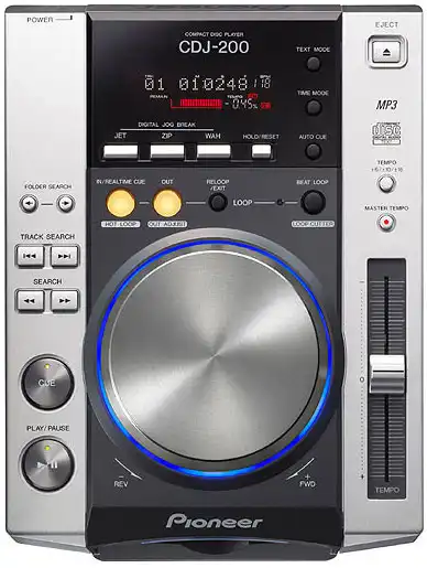 Pioneer CDJ-200. На этой модели появляется совместимость с MP3 форматом. Петля Loop и еще немного приятностей :)