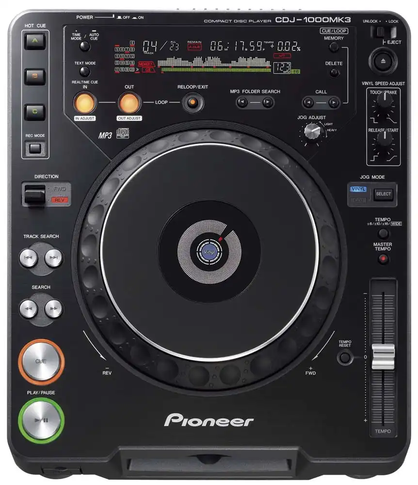Pioneer CDJ-1000mk3. Такие стоят в HK "Fakeл" и "Кокос" Внешним и внутренним содержанием похожа на CDJ-800, однако тут появилась настройка чувствтиельности колеса JOG, и еще много приятностей и наворочек дающих еще большие возможности для вашей фантазии.