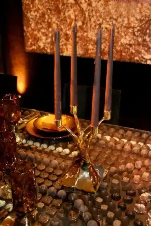 Шоколадные стены комнаты украшают "картины", выполненные из разных сортов сладкого деликатеса, - иллюзии на "Поцелуй" Климта и на работы Джексона Поллока.