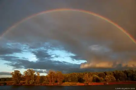 Чем больше капли воды, тем ярче и насыщеннее цвета радуги. Два человека, стоящих рядом, не могут увидеть абсолютно одинаковую радугу, т.к. размер и плотность капель в различных местах могут быть разными.
