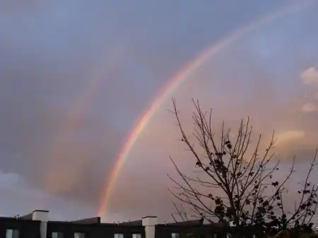 как же образуется радуга? После дождя пока маленькие капельки воды еще удерживаются потоками воздуха, лучи солнца проходят сквозь них, преломляются, отражаются и возвращаются к нам под углом 42 градуса. Когда солнечные лучи проходят сквозь капли, свет разлагается на цвета спектра от красного до фиолетового. Иногда мы видим на небе не одну, а две радуги, причина возникновения второй, так же как и первой, заключается в преломлении и отражении света в капельках воды. Лучи солнечного света успевают два раза отразиться от внутренней поверхности каждой капельки.