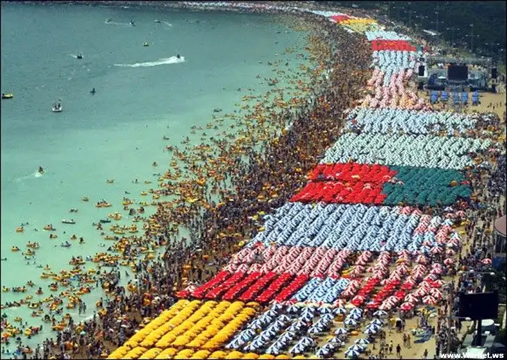 Люди на пляже в Корее