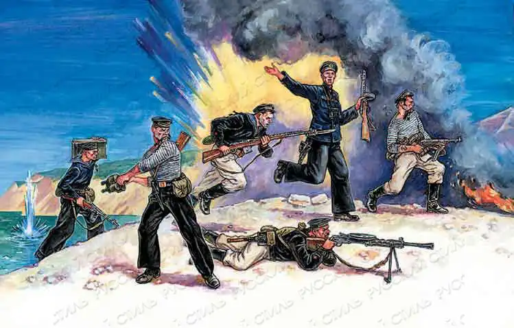 Около 100 тысяч моряков принимали участие в грандиозной Сталинградской битве, из которых только во 2-й гвардейской армии находилось до 20 тысяч моряков с Тихоокеанского флота и Амурской флотилии (то есть, каждый пятый боец армии генерал-лейтенанта Родиона Малиновского). Знаменитый снайпер – старшина 1 статьи В. Зайцев, отправивший на тот свет более 200 вражеских солдат и офицеров, пришел на Волгу с берегов Тихого океана. Другой морской пехотинец, краснофлотец Илья Каплунов из 86-й гвардейской стрелковой дивизии, 20 декабря 1942 года в бою против спешивших на помощь Паулюсу танковых частей Манштейна подбил из противотанкового ружья пять танков. Осколком снаряда ему оторвало ногу, но он не ушел с позиции и подбил из ПТР еще три танка. А затем Каплунов, получивший второе тяжелое ранение, истекая кровью и умирая, гранатой подбил еще один, девятый по счету, танк противника.