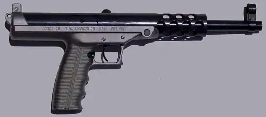 Штурмовой пистолет «Гёнц» ГА, по внешнему виду напоминающий пистолет-пулемет. Длина ствола «Гёнц» — 241 мм, магазин рассчитан на 18 патронов калибра 9 мм (есть увеличенный магазин на 36). Пистолет также может использовать патроны калибра 11,43 мм — одни из самых мощных пистолетных патронов. Существует «Генц» ГС — без ствольного кожуха, стволом длиной 127 мм с нарезами для установки глушителя. Между прочим, "Гёнц" снимался в фильме "Вспомнить всё" в качестве оружия будущего