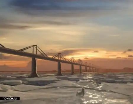 Один из возможных проектов, соединяющих Евразию с АмерикойИдея о соединении Евразии с Северной Америкой возникла довольно давно – в 1890-м году Уильям Гилпин, губернатор штата Колорадо впервые высказал идею о железнодорожной паромной связи между этими континентами. С тех пор было предложено много амбициозных проектов, в том числе тоннель под Беринговым проливом и вот такой вот мост. Строительство и обслуживание моста, в виду сложных климатических условий затруднено, но возможно когда-нибудь появится мост, соединяющий мыс Дежнева на Чукотке с мысом Принца Уэльского на Камчатке. Отделяют их чуть больше 80-ти километров.