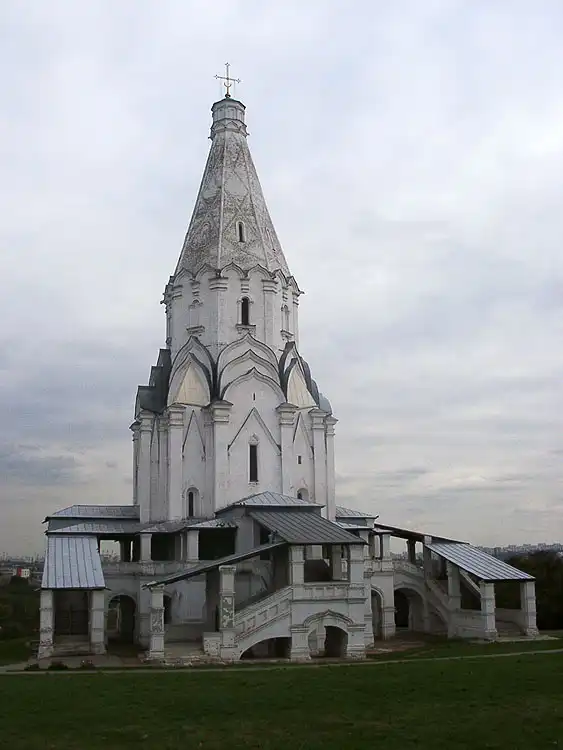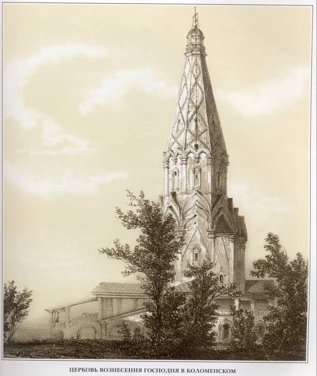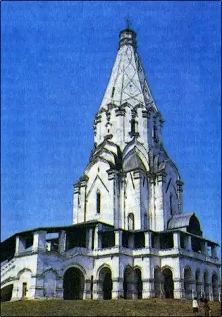 Формы деревянных храмов оказали влияние на каменное (кирпичное) строительство. На Руси стали строить затейливые каменные шатровые церкви, напоминавшие огромные башни. Первым из храмов такого типа была воздвигнутая в Коломенском Вознесенская церковь (1530-1533 гг.).