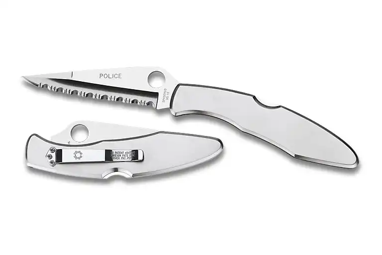 Эти ножи находят большое количество почитателей среди сотрудников полиции США и работников спасательных служб, начиная с дебюта Spyderco® Police в 1984 году. Этот нож оснащен максимально длинным, мощным, но одновременно с тем изящным клинком, способным поместиться в его рукояти. За свою столь долгую историю Police постоянно эволюционировал, менялись материалы из которых изготавливались клинки (GIN-1, ATS-55, VG-10), профиль рукоятки, а также предпринимались попытки расширить семейство Police производством ножей с рукоятками из Carbon Fiber, G-10, впоследствии ставшими коллекционными предметами, стандартный Back Lock трансформировался в Back Lock с David Boye Dent. Spyderco® Police выпускаются в вариантах с прямой заточкой и серрейторной заточкой SpyderEdge™ с переменным шагом. Ножу Police насчитывается уже более двадцати лет, и он многие годы является одним из "флагманов" фирмы. Police - это самая старая (из находящихся ныне в производстве) модель в ассортименте компании.