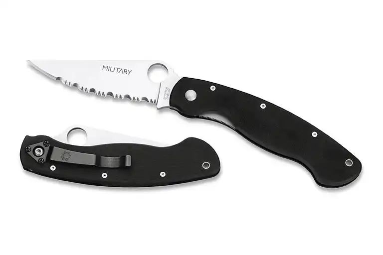 Первые клинки Military из стали 440V закаливались до твердости 59-60 HRC и отличались (по мнению некоторых пользователей) повышенной хрупкостью. В свое время даже описывался случай, когда отломилось острие клинка Military при падении ножа на деревянный пол (при этом нож воткнулся). Получив подобные рекламации, фирма Spyderco внесла изменения в режим термообработки с целью снижения твердости клинков до 56-57 HRC. (Считается, что отличить эти «новые» Military можно по клейму на клинке. На «старом» Military клеймо, которое включало в себя название фирмы-изготовителя (Spyderco), название ножа (Military), марку стали (СРМ 440V) и место производства (Golden, Colorado USA), наносилось на плоскость спусков клинка тонкой гравировкой. На «новом» Military на спусках клинка осталось только название ножа, нанесенное простыми черными литерами, а вся остальная информация перенесена на обе стороны пяты клинка.)