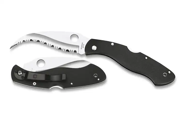 Из-за особой, S-образной формы, защищенной американскими патентами Pat.№4347665 и D. 344,006, лезвие всегда расположено под углом к цели, за счет чего достигается значительный режущий эффект. Этому же способствует и серрейторная заточка – многоступенчатый серрейтор SpyderEdge.