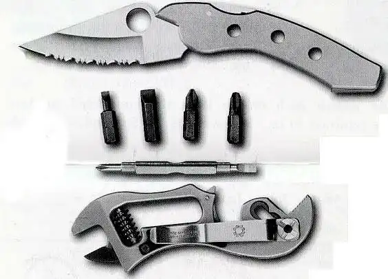 Помимо пассатижей (выполненных в виде так называемого «трубного» или «газового» двухпозиционного ключа), позволяющих (после недолгой тренировки) привести их в «рабочее состояние» одной рукой, инструмент также включает: