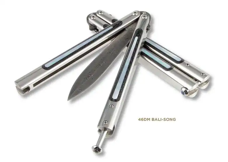 Первые «бабочки» от Bali-Song Inc. изготавливались вручную. Вначале покупателям предлагалась всего одна модель, но с возможностью выбора формы клинка (Hollow ground или Bowie) и материала рукояти (медь или нержавеющая сталь с накладками из микарты или без них и с тремя вариантами цвета накладок). Материал клинка – нержавеющая сталь марки 154СМ, впервые использованная для массового ножевого производства.