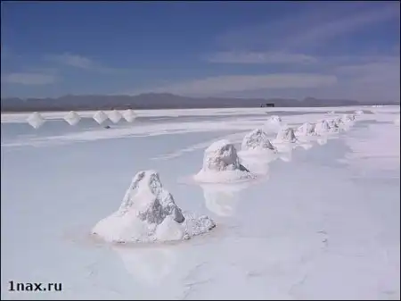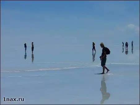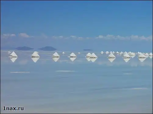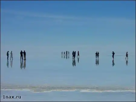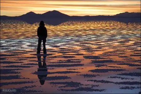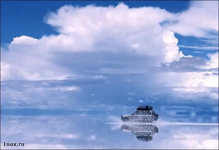 Салар де Уюни – высохшее соленое озеро - самый большой в мире солончак. Его площадь – 10582 кв. км. Он расположен в юго-западной Боливии (департаменты Potosí и Oruro) у гребня Анд на высоте 3650 метров. Когда поверхность солончака покрывается тонким слоем воды, он превращается в самое большое в мире зеркало.