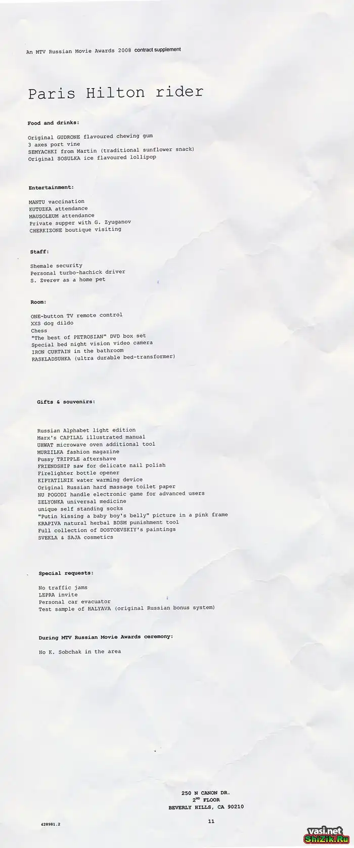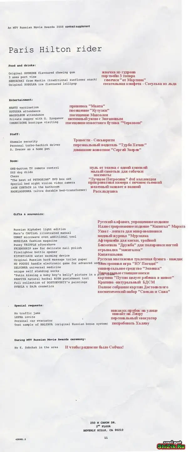 Пожелания Перис Хилтон в России