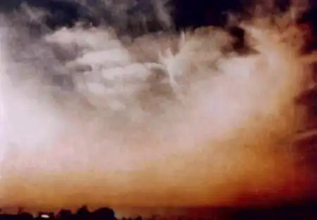 Анни рассказала, что в 1998 году однажды утром она увидела на небе 15 чудесных Ангелов-облаков, следовавших подряд один за другим.