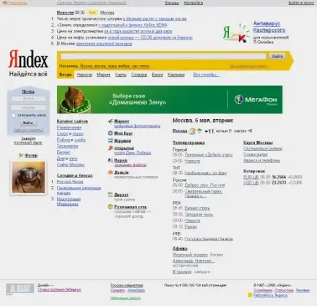 Дизайн главной страницы Yandex.ru в 2008 г.