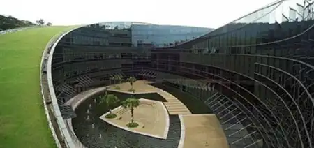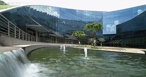 Но и это еще не все. Стеклянная поверхность дает отличную возможность ученикам и учителям выглядывать в окошко и любоваться красотами этого культурного центра прямо во время занятий. Не думаю, что вас за это будут сильно ругать, ведь посмотреть там есть на что. Фонтаны, огромное количество зелени, тропических деревьев и островков между искусственными водоемами. Как студенты вообще умудряются там учиться?