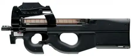 ПП Р90 был разработан в конце 1980х годов фирмой FN Herstal (Бельгия) в качестве оружия самообороны для тех военнослужащих, кому по штату не положены автоматы (экипажи танков и боевых машин, рассчеты артиллерии и т.п). Так как пистолетные патроны, используемые в обычных ПП и пистолетах неэффективны против современных бронежилетов, получивших широкое распространение в армиях мира, ФН разработала новый патрон, имеющий высокую проникающую способность пули при приемлемом убойном и останавливающем действии. Новый патрон имеет калибр 5.7мм и представляет собой несколько уменьшенный патрон 5.56мм НАТО, имея заостренную пулю со стальным сердечником. Такая пуля, при стрельбе из Р90, развивает дульную скорость до 715 м/с и способна поражать цели в кевларовых бронежилетах на дальностях до 200 метров.