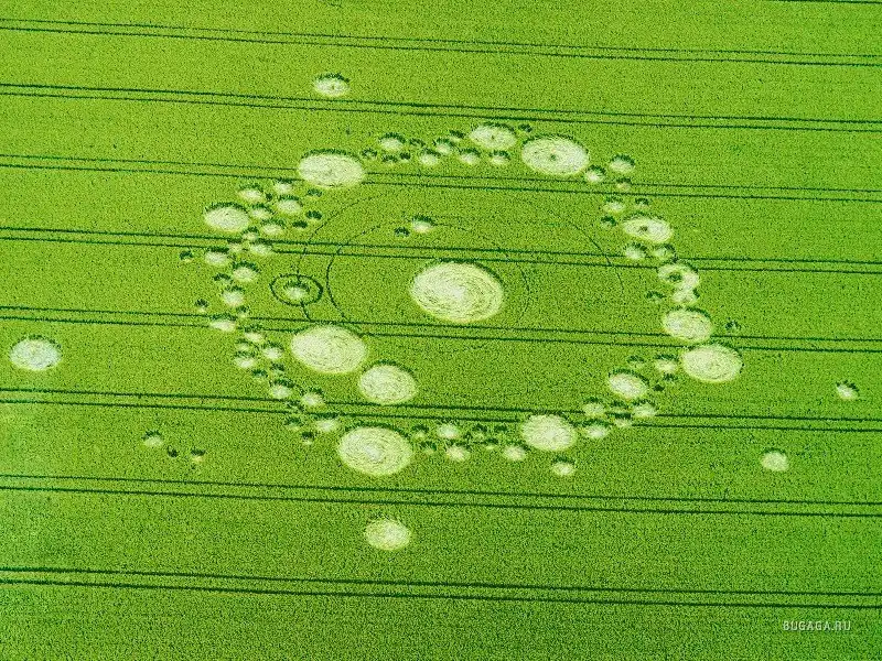 С 1972 начали поступать сообщения о том, что на посевных полях Англии появляются странные рисунки: примятые к земле колосья образовывали странные фигуры, чаще всего круги. Тогда, как и сейчас, никто понятия не имел, что это такое и как появилось, почему появилось и что значит. Вплоть до конца 70-х годов круги оставались лишь простыми кругами, появляющимися поодиночке; злаки в них всегда были уложены по часовой стрелке. Затем они начали появляться группами, располагавшимися определенным образом. В большом количестве и разнообразии такие фигуры появлялись в 1980 году в графстве Гэмпшир; в этот и некоторые другие годы было зафиксировано появление 500 и более кругов и пиктограмм на полях зрелой пшеницы. Рост сложности произошел в 1990 году с появлением огромного комплекса кругов с ответвлениями. Им было дано наименование "пиктограммы", как и последующим сложным образованиям. С тех пор пиктограммы становятся все более сложными. Так, в 1991 году появились две пиктограммы: "Алхимический треугольник" и затем "Мандельброт", который почти идентичен математической фигуре, открытой доктором Бенуа Мандельбротом.