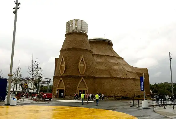 Павильон «Глиняный кувшин» (El Botijo). Назван так из-за своей формы, напоминающей кувшин,и потому что сооружение построено из соломы и глины.