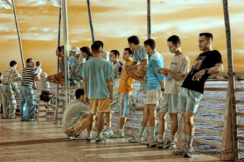 Люди на пляже Макасаре-Индонезии, любят собраться и проводить время вместе, чтобы наслаждаться прекрасным закатом, общаясь друг к другу и расслабляясь от трудного рабочего дня...