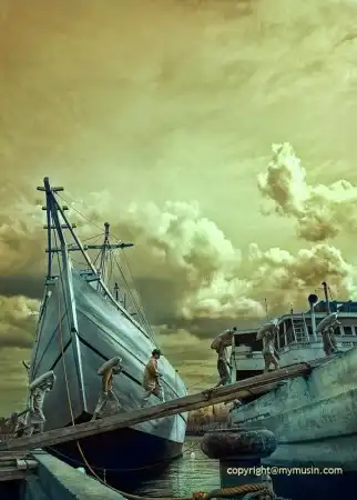 Час пик Sunda Kelapa's. Рабочие делали свою работу, доставляя товары на борт...