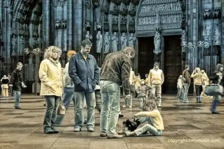 Обычная уличная жизнь рядом с DOM-Cathedral Cologne в Германии перед Пасхой...