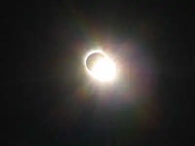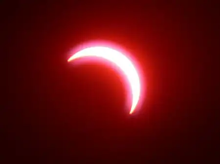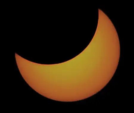 Полоса полного затмения может достигать в ширину около двухсот километров. Наблюдатели, находящиеся вблизи полосы полного затмения, могут видеть его как частное солнечное затмение. При частном затмении Луна проходит по диску Солнца не точно по центру, скрывая только его часть. При этом небо темнеет гораздо слабее, чем при полном затмении, звёзды не появляются. Частное затмение может наблюдаться невооружённым глазом на расстоянии порядка двух тысяч километров от зоны полного затмения.