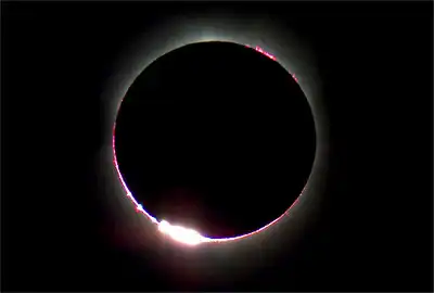 Солнечное затмение — затмение, которое происходит, когда Луна попадает между наблюдателем и Солнцем, и загораживает (затмевает) его. Поскольку Луна светит отражённым светом, и перед затмением обращена к нам неосвещённой стороной, то непосредственно перед затмением всегда имеет место новолуние, то есть Луна не видна. Создаётся впечатление, что Солнце закрывается чернотой неизвестной природы. Во время солнечного затмения космонавты, находящиеся на орбите могут наблюдать на поверхности Земли тень от Луны. Те, кто на Земле попадают в эту тень — наблюдают солнечное затмение.