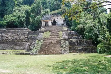 Паленке (Palenque, майя Лакамха) — условное название развалин большого майянского города на северо-востоке мексиканского штата Чьяпас — политического и культурного центра майя в 3-8 вв. н. э. Сохранились: остатки дворца (площадью 92 x 68 м) — группа зданий, расположенных вокруг 2 больших и 2 малых дворов, квадратная в плане башня; «Храм Солнца», «Храм Креста», «Храм надписей» (в толще его пирамиды в 1952 году обнаружено помещение с ложным сводом, барельефами на стенах и саркофагом в центре — видимо, гробница правителя). Все здания богато украшены рельефами из стука. Паленке погиб, вероятно, в результате нашествия племён с побережья Мексиканского залива в IX в. Руины известны с XVIII в. и неоднократно исследовались (в частности, мексиканскими археологами в 1949-68 гг.).