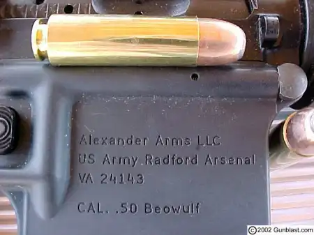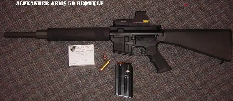 Фирма Alexander Arms является разработчиком и производителем патронов .50 Beowulf и комплектов для стандартных армейских винтовок M16 и карабинов M4. Комплекты этой фирмы представляют собой верхнюю часть ствольной коробки штурмовой винтовки M16 со стволом и цевьем, а также магазины. Эта верхняя часть, крепящиеся к нижней части M16 превращает винтовку калибра .223 (5,56 мм) в оружие 50-го калибра. Наиболее оптимальной конфигурацией для такого комплекта является карабин для ближнего боя. Такой карабин на основе M4 использующий патрон .50 Beowulf имеет максимальную эффективную дальность стрельбы до 200 метров. Емкость однорядного магазина составляет10 патронов. Патрон .50 Beowulf был разработан преимущественно по результатам боевого опыта, полученного солдатами армии США и работниками частных охранных агентств в Ираке. Патроны .50 Beowulf созданы на основе .500 S&W Magnum и придают пуле массой 25г энергию 3500-4500 Дж.