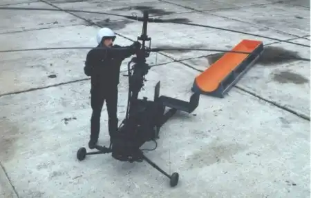 В результате натурной отработки конструкции вертолета, удалось добиться того, что время приведения вертолета из транспортировочного положения в эксплутационное одним человеком составило менее 10 мин.