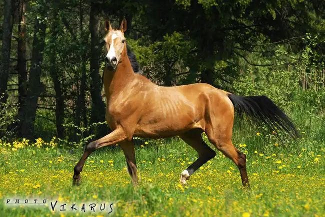 На краю Каракумов, где с полуденной стороны подымается хребет Копет-Даг, узкой полосой от Бахардена до Артыка тянется у его подножия оазис Ахал. Это родина одной из самых удивительных, древнейшей среди культурных конских пород - ахалтекинской. Ее родословная восходит к седой древности среднеазиатских оазисов, былому величию Нисы и Мерва, к “небесным” коням Ферганы. Канули в Лету легендарные цари и герои, грозные крепости и богатые города превратило в руины беспощадное время, но оно оказалось невластным над удивительным живым памятником славного прошлого - ахалтекинским скакуном.