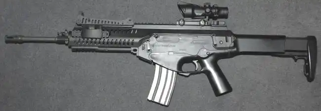 штурмовая винтовка Beretta ARX-160, приклад сложен и сдвинут до упора для уменьшения габаритов оружия