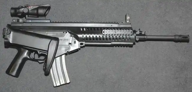 штурмовая винтовка Beretta ARX-160, приклад разложен и раздвинут до упора, установлен оптический прицел Trijicon ACOG