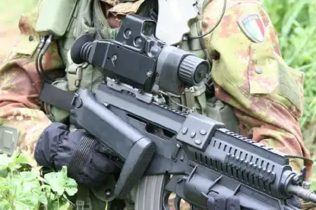 штурмовая винтовка Beretta ARX-160 в комплекте с подствольным гранатометом Beretta GLX-160 и перспективным оптоэлектронным прицельным комплексом (включающим в себя дневной, ночной и обычный оптический каналы, лазерный дальномер и баллистический компьютер для гранатомета)