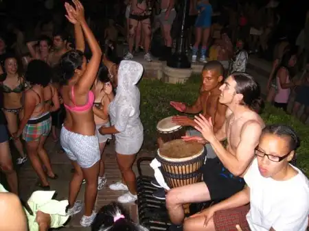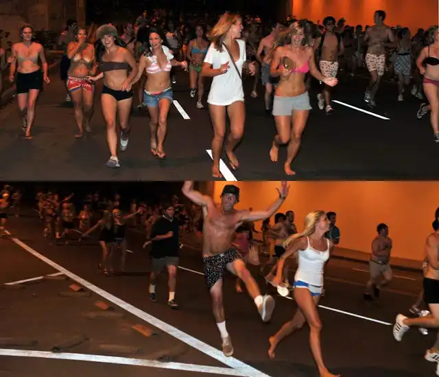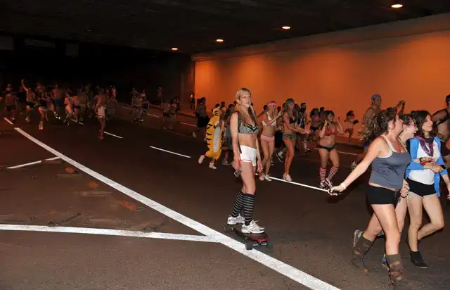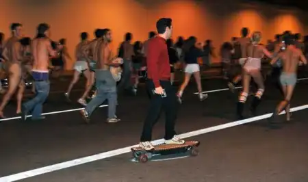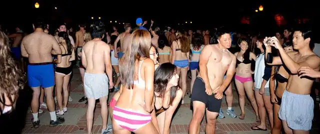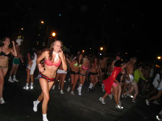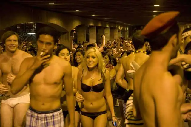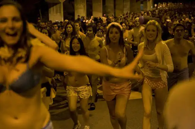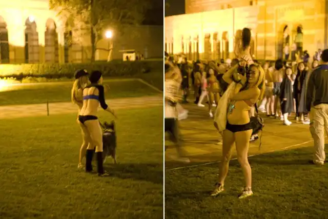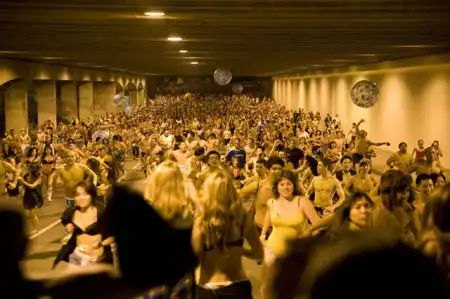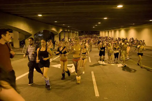 Это даже не совсм флешмоб, скорее это традиция. Тысяци студентов собираются ночью и пробегают по туннелю Strathmore. А потом (как перевел мне на великий и могучий переводчик) полицейские надевали их 0_о. Вот такие вот традиции.