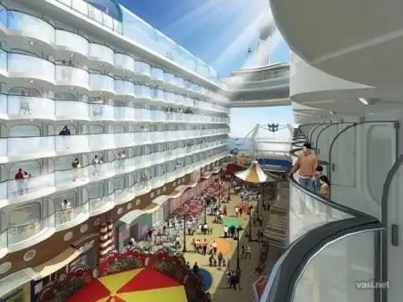 Такого в истории человечества еще не было. В ноябре 2009 года на воду будет спущен самый крупный из когда-либо построенных лайнеров на планете! Это город-корабль под названием Oasis of the Seas! Лайнер будет способен принять на свой 16-палубный борт до 5400 пассажиров в 2700 каютах, его водоизмещение составит рекордные 225 тыс. тонн!