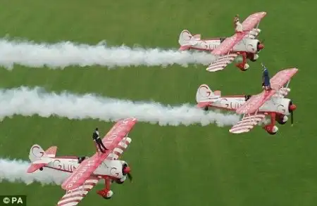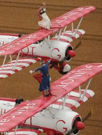 Пара британских экстремалов решили, что их брак должен быть заключен на небесах и обвенчалась на крыльях самолетов, поднявшихся на высоту около 300 метров, пишет The Daily Mail.
