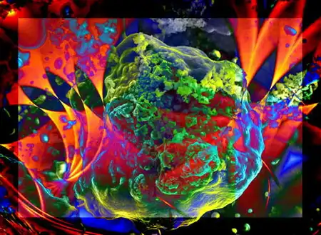 А вот удивительная по красоте картина (одна из пяти представленных на NanoArt 2007) Ренаты Спьяцци (Renata Spiazzi). Картина была создана при наложении перекрывающихся фракталов с помощью программы Apophysis.